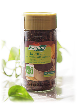 有機栽培されたチコリ、小麦、麦芽などを焙煎した、香ばしいノンカフェインのコーヒー風インスタント飲料です。チコリの根は焙煎するとコーヒーに似た風味がするため、第二次世界大戦時のヨーロッパで、生産地からコーヒー豆が輸入できなかった際に、コーヒーの代用として飲まれました。食物繊維やビタミンを豊富に含み、体にやさしいノンカフェインで、コーヒーが苦手な方にもお勧めです。牛乳や豆乳ともよく合います。
