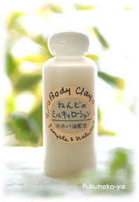 ボディークレイでは、モンモリロナイトという不思議な特性を持つ粘土を原料として使っています。このねんどは超微粒子(ウイルス並みの0.2ミクロン)の結晶で、土の中にも混じっていますが、元は地球の岩石です。 モンモリロナイトを電子顕微鏡で見ると、まるでバラの花びらのような層をなしていて、非常に広い表面積(1gあたり800平方メートル、テニスコート3面分)を持っています。またこの結晶はマイナスに帯電しているので、層と層の間に大量の水や油や有機物などを、その力でどんどん引き寄せ包み込み、自分の容積の60倍以上にもふくらみます。 また、他の粘土は乾くとバラバラになるのに、モンモリロナイトは超薄いフィルム状の皮膜を形成します。このねんどは、人々のくらしと共にあって美容や洗髪に使われてきた「古くて新しい素材」です。