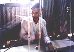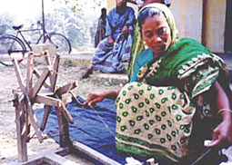 カディという言葉を聞いたことがありますか?映画「ガンジー」を見た人は聞き覚えがあるかもしれません。映画の中でガンジーが自ら糸車を回して作り、はおっていたのが、カディと呼ばれる手紡ぎの布です。伝統的な綿布の作り方ですが、バングラデシュではコミラ県のチャンディナに伝えられるのみとなってしまいました。 |