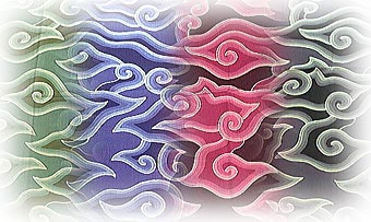 インドネシア・チレボン地方の代表的なバティック伝統柄「メガムンドゥン」。力強く渦巻く雲と美しいグラデーションは、何故か私たち日本人の心にしっくりくる柄。細かいグラデーションの一色々は、チャンティンという道具を使って蝋を置きながら、染め重ねていきます。滑らかなグラデーションを染め重ねて出していく事、熟練された技術と長い時間を要します。