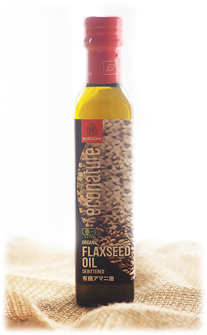 主成分がオメガ3(αリノレン酸)のアマニ油(フラックスオイル)には、微量でも生理的な働きを助け、体組織を正常にする働きがあると言われています。