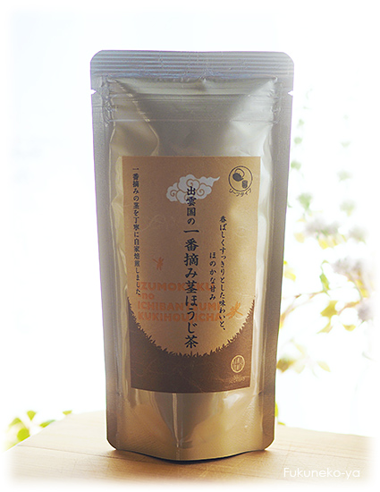 ほうじ茶の原料としては少し贅沢ですが、香りのよい一番摘みの茎だけを厳選し、香りを十分に引き出すため直火焙煎機でじっくりと時間をかけて仕上げました。すっきりとし香ばしく、ほのかな甘みも感じられるほうじ茶です。原料の茶葉は出雲地方で栽培されたものを使用しています。お食事の際のお茶としてもおすすめです。