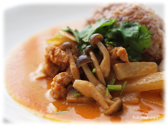 家庭ごとにそのレシピはいろいろ、お母さんが家族の体調を考えて調合します。常夏の暑さに負けない代謝のいい、スリムな体を作る基です。タイ料理はおいしいペーストさえ出来てしまえば、あとはあまり時間がかかりません。材料も日本のもので十分おいしく出来ます。昔のレシピで調合にこだわり作られた、辛さと生のハーブがミックスされた本場の味です。色々米などの玄米や黒米ごはん、玄米ビーフンによくあいます。