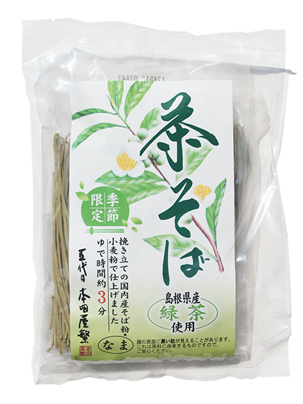 【原材料名】めん:小麦粉(国内産)、そば粉(国内産)、緑茶(島根県産)、食塩