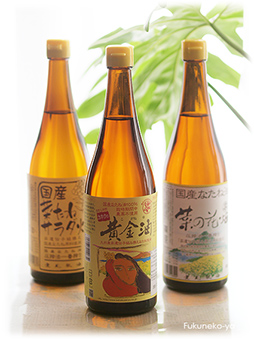 添加物や化学薬品等(苛性ソーダ・蓚酸など)は、使用していない圧搾一番搾りの油です。