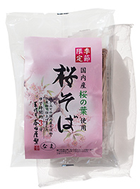 国内産の桜の葉、玄そば、小麦を使用しています。桜の葉を麺に練りこみ作り上げられています。