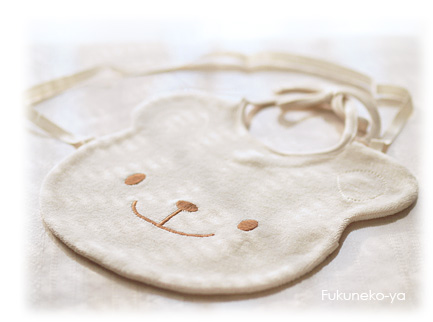 ほのぼのとした優しい素材のスタイ! オーガニックコットンを使った綿100%のスタイ。やさしいほのぼのとした表情がなんとも言えない魅力です。