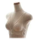 伸びの気持ち良い40/-フライスと薄い80/-平織を組み合わせた、前開きのブラジャー。前の土台部分の伸縮性をなくしたことで、バストの横流れを軽減しました。 後ろはパワーネットでしっかり支え、背肉のくいこみにくいラインづくりをしています。 見た目にもスタイリッシュなリラクシングブラです。